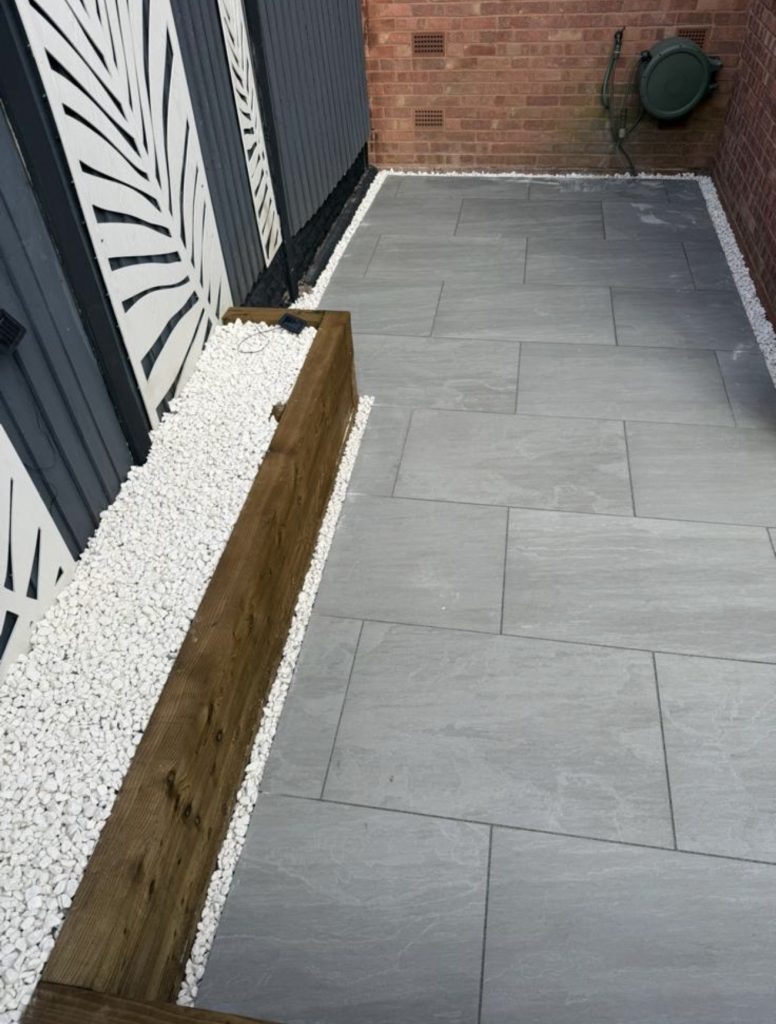 - Porcelain Paving: Selected for its resilience, low maintenance, and elegant appearance, porcelain paving forms the primary feature of the outdoor space. It can be used for patios, pathways, or seating areas, offering a seamless surface that withstands weather conditions.